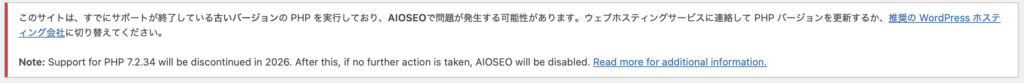 PHPのバージョンを確認したら言われた通り7.2だったため、8.2以上に変えることにしました。