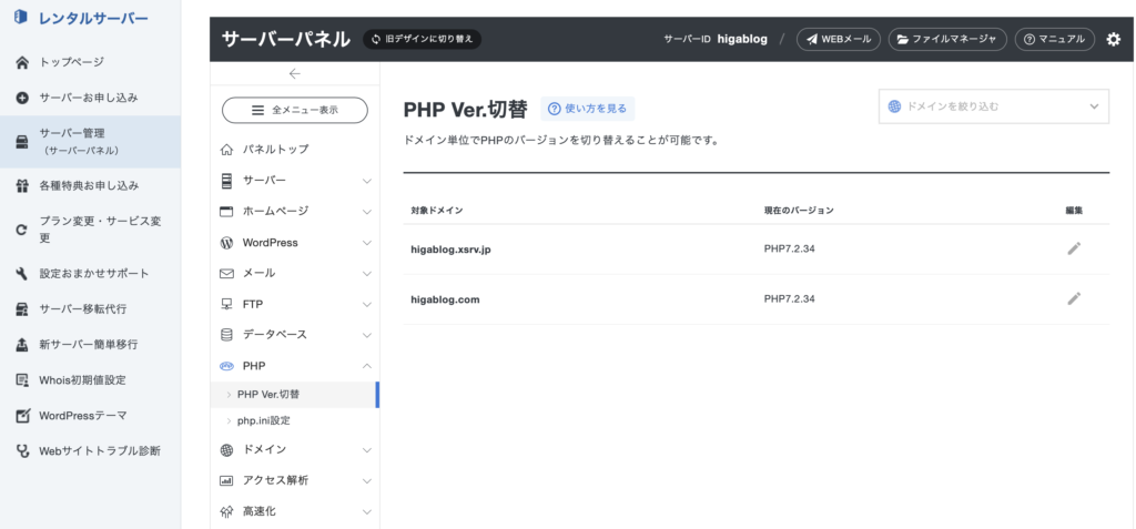 - ドメイン(higablog.com)を選択。
