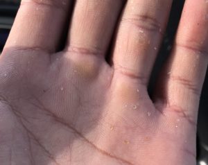 手にへばりつくガラス片