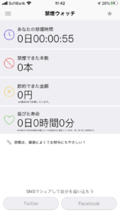私はこちらの禁煙ウォッチというアプリを使っています。