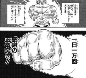 まあ、HUNTER×HUNTERのネテロ会長は毎日一万回正拳突きしてたので、