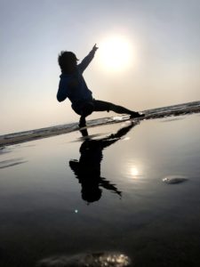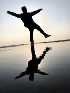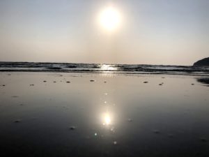 1kmにも及ぶ砂浜で、干潮で水面が薄く広がっている時にウユニ塩湖のような景色が見れます